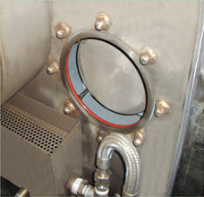 | 位于進(jìn)布端的預(yù)給濕系統(tǒng),使織物快速吸收足夠濕度,發(fā)色更好。 | 配有紅外探頭檢測布量,比機(jī)械式更加精準(zhǔn),對薄型織物尤為明顯。 | 位于循環(huán)系統(tǒng)內(nèi)部的冷風(fēng)閘,在需要處理內(nèi)部故障時(shí),打開冷風(fēng)快進(jìn)系統(tǒng),快速降溫避免長時(shí)間等待。 |