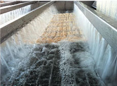 | 可調(diào)式的雙分絲展幅系統(tǒng),配合條幅平移紅外對中器,保證織物在低張力狀況下居中進(jìn)布,而不會產(chǎn)生拉升扭曲。 | 通過3-8分鐘堆置和大流量循環(huán)噴淋,使浮色和漿料充分膨化,動(dòng)態(tài)過濾系統(tǒng)將洗下的雜質(zhì)和毛羽過濾出,大大提高水的重復(fù)利用率。 | 布面包覆在沖孔的轉(zhuǎn)鼓上,被6支水刀進(jìn)行穿透式水洗,效率高,無損傷,水洗壓力可調(diào),配有獨(dú)立過濾系統(tǒng),以提高水的重復(fù)利用。 |